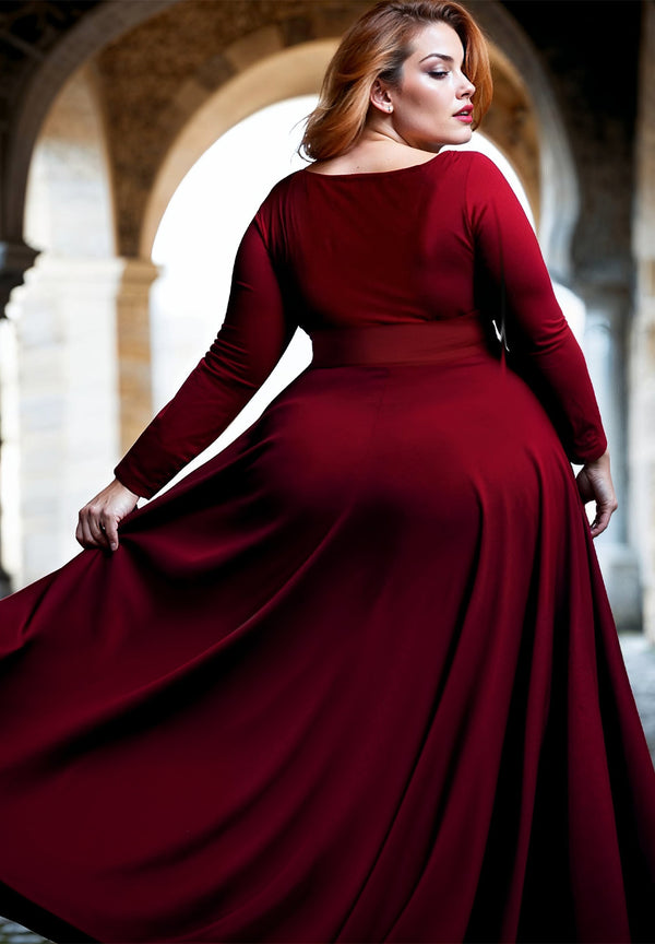 The custom-fit Elizabeth Plus Size Evening Dress In Bordeaux is a stunning and elegant choice for any special occasion. With its square neck, cinched waist, and flared skirt, this dress is designed to flatter and accentuate your curves. Made from high-quality jersey fabric, it drapes beautifully and feels comfortable against the skin. The floor-length design adds a touch of glamour, while the fully lined interior ensures a smooth and seamless fit. Perfect for formal events or elegant evenings out, this dress will make you feel confident and stylish all night long.